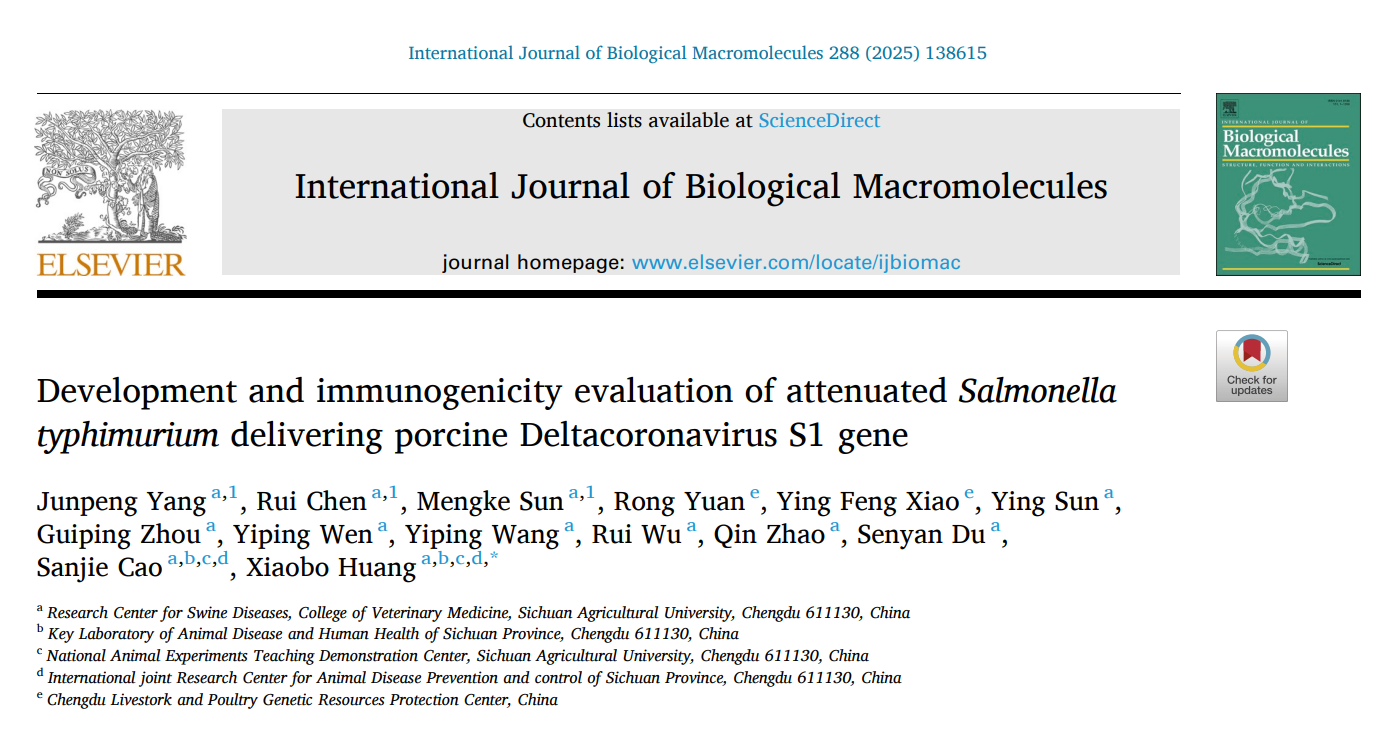 近日,四川农大best365网页版登录官方网站猪病研究中心在国际著名期刊《International Journal of Biological Macromolecules》(中科院1区Top,最新IF7.7)发表题为“Development and immunogenicity evaluation of attenuatedSalmonella typhimuriumdelivering porcine Deltacoronavirus S1 gene”(递呈猪Delta冠状病毒S1基因的减毒沙门菌的开发与免疫原性评价)的研究论文。本研究首次以减毒沙门氏菌SL7207为载体,构建了递呈PDCoV的S1基因口服疫苗SL7207(pVAX1-S1),并系统评价了该口服疫苗的免疫原性、保护效力和应用潜力。
