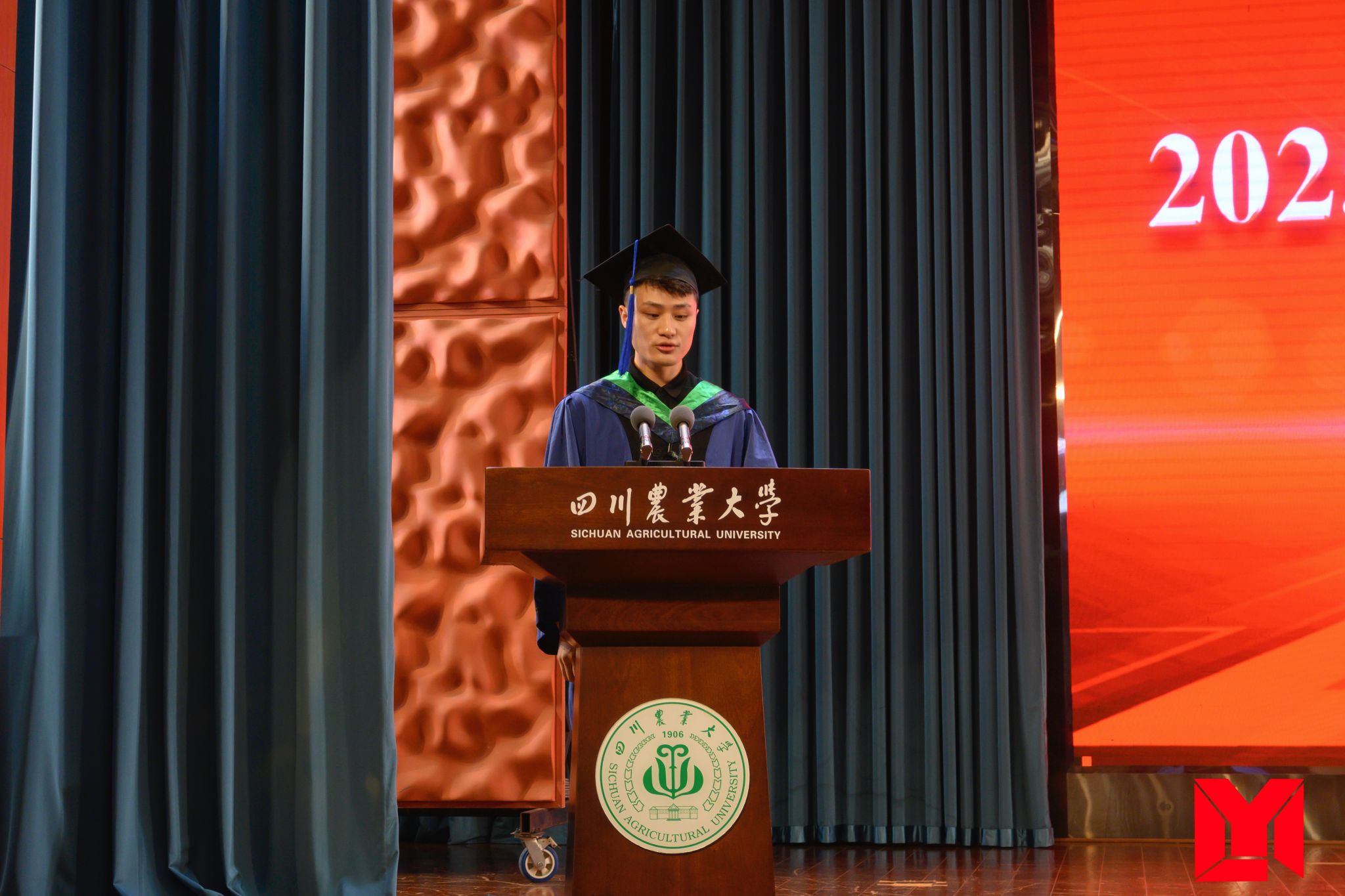前途似海,来日方长。虽然毕业生们与川农动医的故事即将画上句点,但他们人生的“全新篇章”正在徐徐展开。研究生代表游东在发言中讲到:“毕业不是终点,而是新篇章的起点。”本科代表李祝伟也在发言中表达了对往昔川农大生活的怀念以及对每位毕业生的祝福。