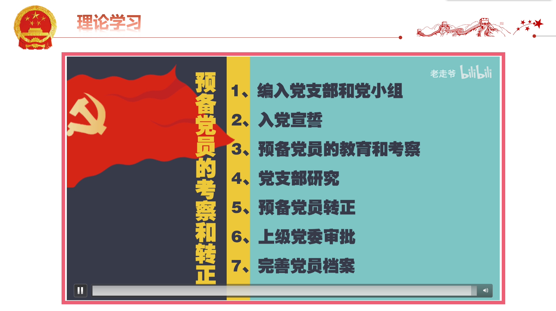 中期学习过程中,本次理论学习在分队成员们激情齐唱《国际歌》中拉开了序幕。第一部分的理论学习,主持人任原墨同学带领队员们首先通过一则视频对《中国共产党发展党员工作细则》进行初步地学习和了解,之后又详细讲解了发展党员工作的5个阶段和25个具体程序,帮助队员们进一步加深了解中国共产党是如何发展党员的,然后又为队员们详细介绍了《中国共产党发展党员工作细则》中的五个章节的具体要求,使得每位队员对于中国共产党发展党员的细则及工作流程都拥有了更加深刻的理解,清楚地认识到发展党员的要求和标准。紧接着趁热打铁,进行第二部分的知识问答环节,通过对刚刚学习到的中国共产党发展党员工作细则及工作流程的一些内容进行提问,鼓励队员们积极回答,以此巩固之前所学到的要点,进一步加深队员们对中国共产党发展党员工作细则及工作流程的理解与记忆。接下来,是为会议的第三部分,小组成员之间进行自由讨论,每位成员都做足了功课,线下查询了许多相关资料,在自由讨论时纷纷结合自己的所想所悟,与队员们分享自己的观点。