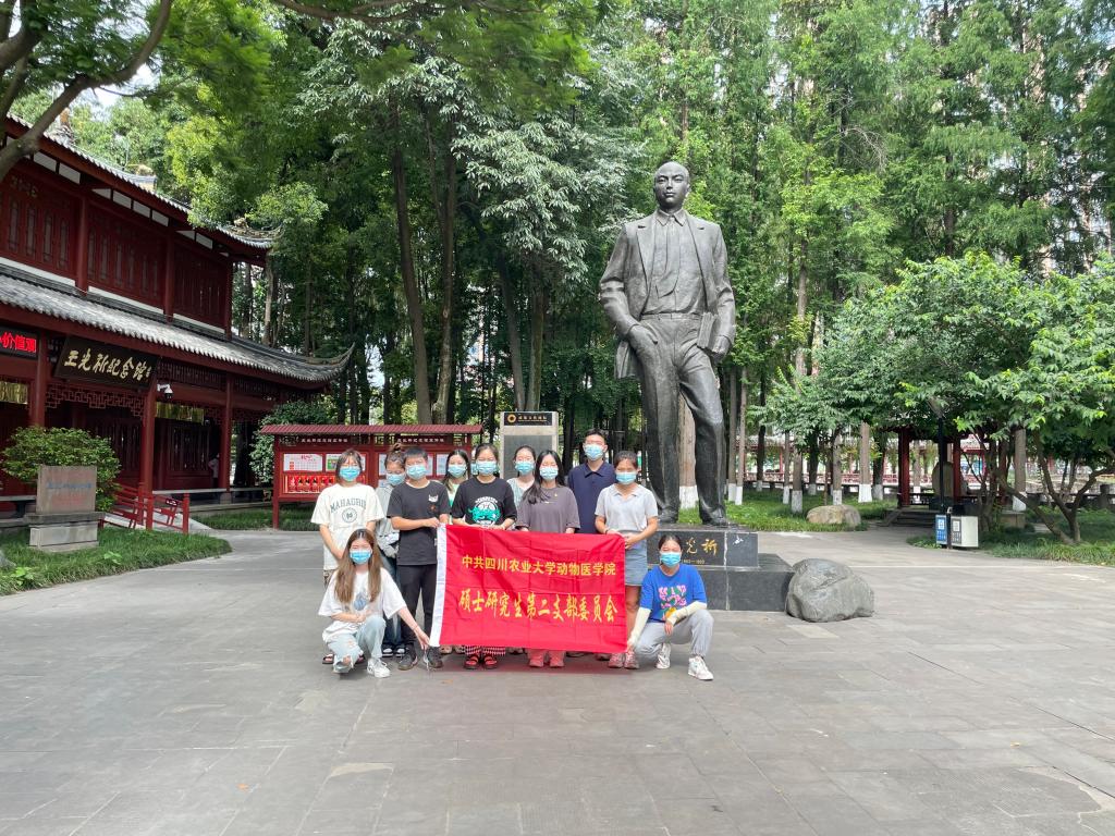 习近平总书记在湖南考察时曾提到“要教育引导广大党员、干部发扬革命传统,传承红色基因。各级党组织要把党的政治建设放在首位,教育引导广大党员、干部筑牢信仰之基、补足精神之钙、把稳思想之舵。”为更好地引导川农大师生传承红色基因,坚定理想信念,不忘初心,继续前进,7月20日至26日,川农大best365网页版登录官方网站研究生第二党支部传承红色基因小队一行13人在best365网页版登录官方网站成都校区、温江区王光祈纪念馆、雅安市烈士陵园纪念馆以及乐至县陈毅故居等地,开展了以“参加一个出征仪式、聆听一段红色历史、参观一些红色基地、举办一场宣誓仪式、讲授一堂专题党课、召开一次主题交流、撰写一篇心得体会”等七个“一”为主要内容的“传承红色基因,坚定理想信念”暑期社会实践。