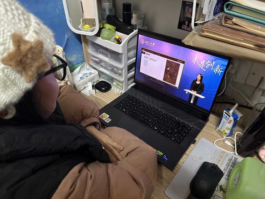 (图为宣讲员杨砚迪正在学习培训课程)