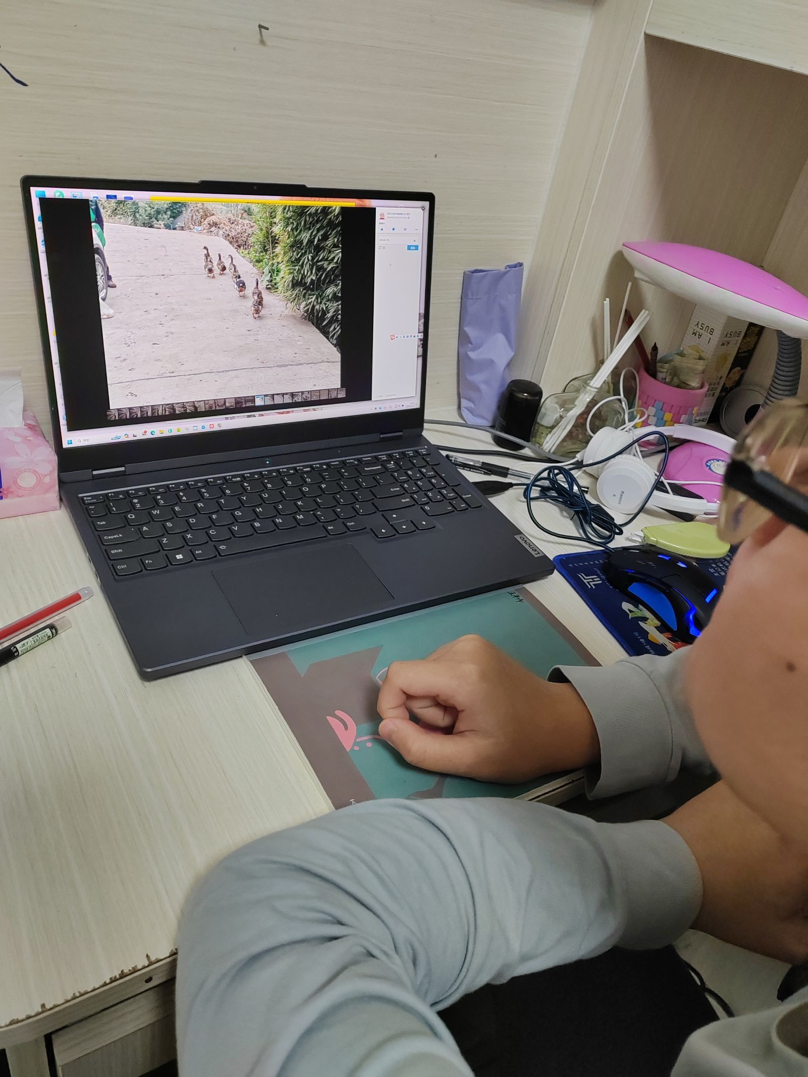 在线下实践进行的同时,线上实践也在有序开展。参与线上实践的队员实时观察分析线下聂臻浩、魏士博实践发回的图片和资料,并从不同角度分析鸭的生长环境与生理状态,结合实际理论提出自己的思考。其中,队员王平伟表示:番鸭宜饲养在气候温暖的地区并实行分期饲养。队员文易杰提出:鸭饲料按鸭的生长阶段应该分为起始饲料、生长饲料、完成饲料三种,并需要在不同生长阶段适应鸭的不同生理特点。