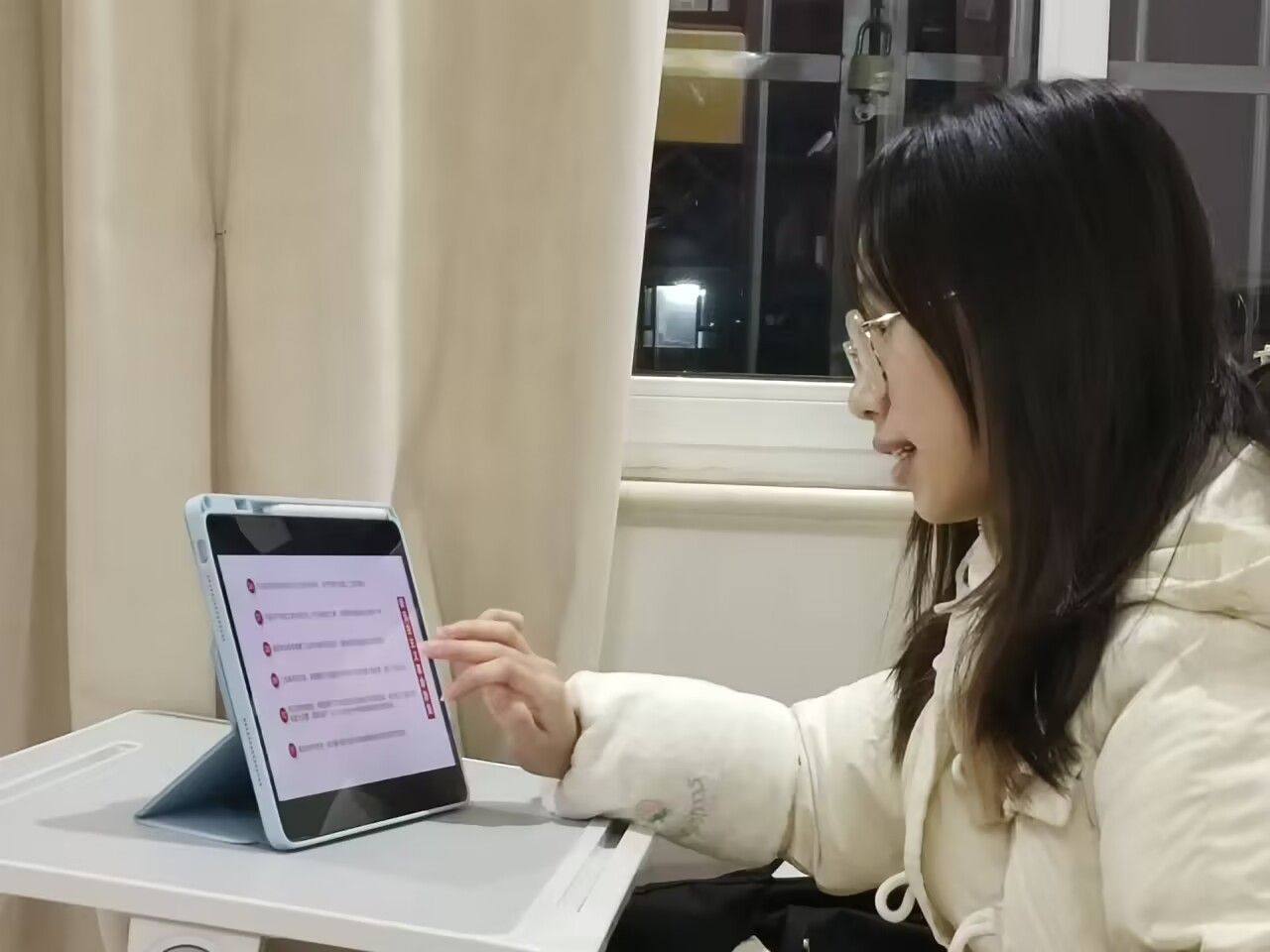 (图为小组成员黄菁正在录制党的二十大视频)