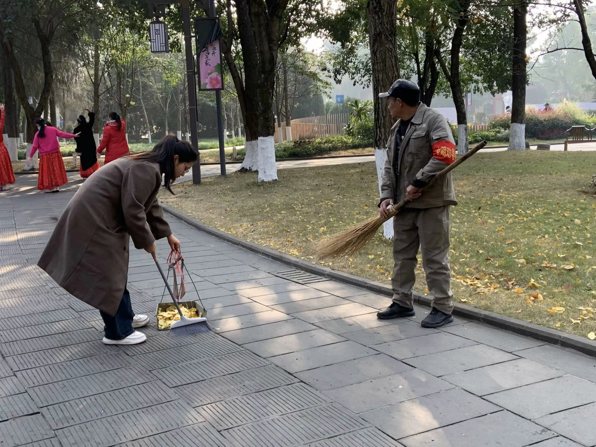 助力环卫工人,践行雷锋精神。1月14日至18日,分队成员来到成都文化公园,开展帮助环卫工人打扫公园的活动,队员们分工合作,各司其职,使文化公园焕然一新。当被问及对频繁清扫落叶的看法时,环卫工人表示:“我们只想为游客提供更好的环境”,“已经习惯了,落下来重新扫干净就好了。”平淡的回答却彰显出他们的奉献精神,就如雷锋精神一样春风化雨润物无声。分队长李金涛感慨道:“在新时代,我们要学习环卫工人们的奉献精神和劳动精神,让这种精神成为我们行动的指南。我们要尊重环卫工人们的劳动成果,不乱扔垃圾、不随地吐痰,保持公共场所的卫生整洁。同时,我们也要积极参与志愿服务活动,为社区的环境卫生和绿化工作贡献自己的力量,用自己的实际行动去践行这种精神,为实现中华民族伟大复兴的中国梦贡献自己的力量!”