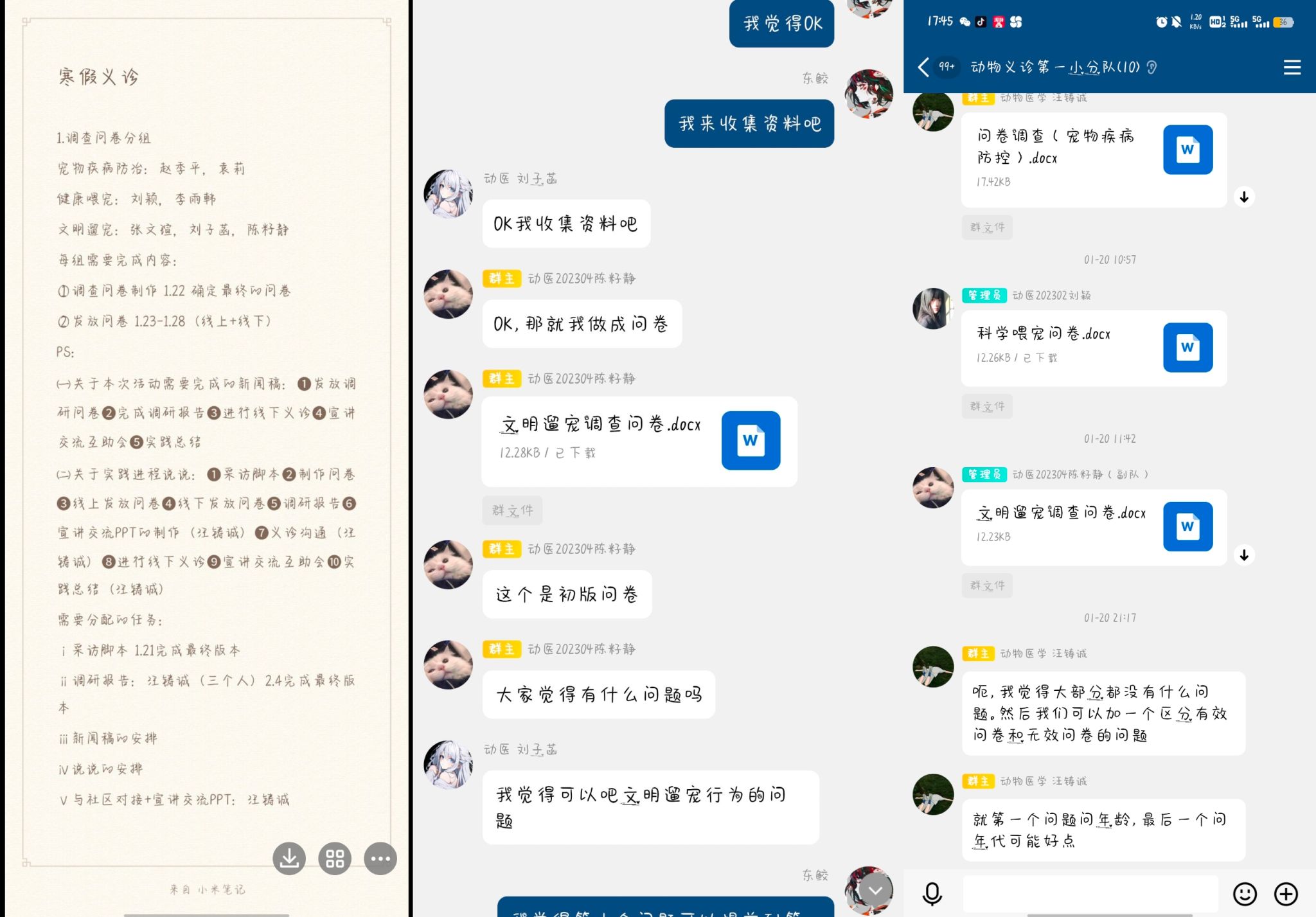 为深入学习贯彻党的二十大精神,贯彻落实习近平总书记来川视察重要指示精神,以“学思想 重实践 建新功”为主线,在社会观察、调查研究、学习体验、志愿服务中了解国情社情民情,1月16日至2月19日,best365网页版登录官方网站“筑动保心·宣医家情”寒假社会实践第一分队在线上和线下开展了宠物健康相关的社会实践活动。在科普调研的同时,团队利用所学的专业知识为营造良好的养宠环境贡献力量。1月16日,团队成员通过线上会议确定了社会实践的目标和工作分配。17日至22日,团队成员分组收集资料,通过社交平台发放“健康喂宠”、“宠物疾病防治”、“文明溜宠”三份调查问卷。截至2月19日,共收集到了300余份有效问卷.队长汪铸诚、副队长陈籽静、队员张文瑄负责数据整理,共同完成了调研报告的撰写,使团队成员对于本次线上调研的结果有了更加深刻、全面的了解,为后续宣传及线下义诊活动提供了重点方向。