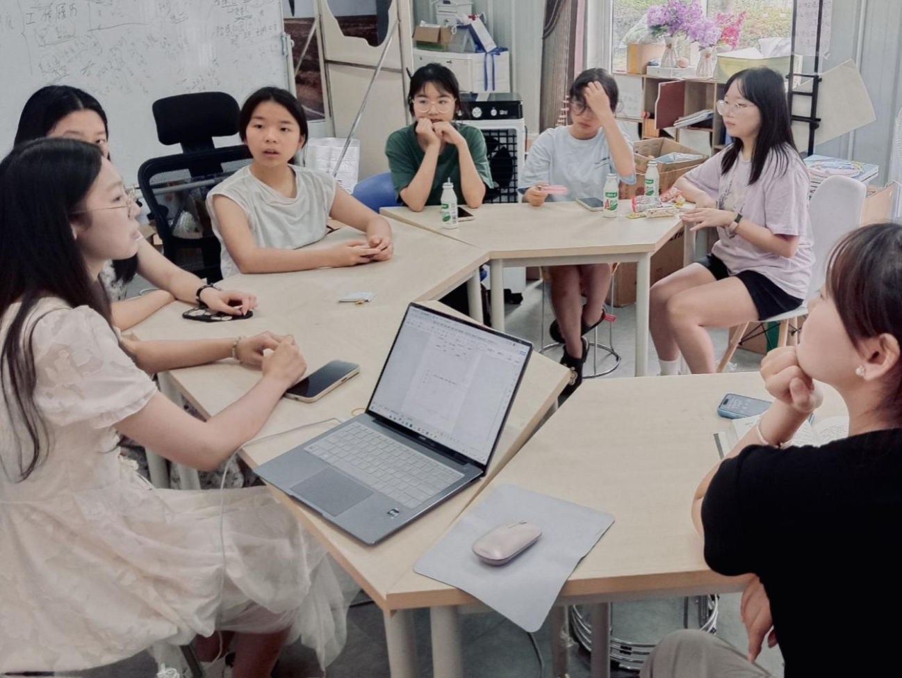 (图为“医”起旅行,织阳支教-乡村分队成员在讨论夏令营形式及内容)
