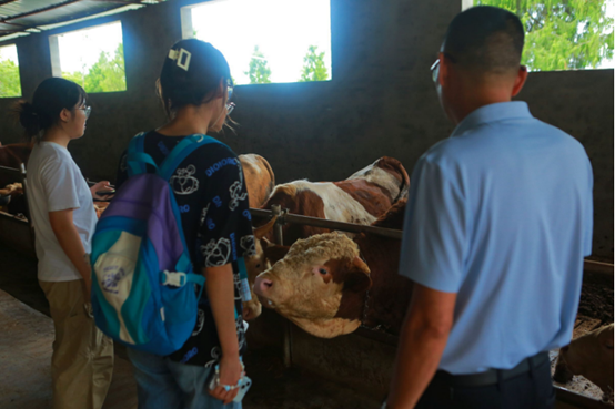 第一周期末尾,在动物防疫站站长李子东的带领下,团队前往当地肉牛养殖场参观学习,据了解,该养殖场有西门塔尔牛、黄牛、奶花牛等品种。西门塔尔牛是世界八大肉牛之一,在全球的肉牛养殖业中有着举足轻重的地位。此外,养殖场还设有完善的畜禽粪污贮存利用设施,防止对环境产生污染。团队初步了解了养殖场的工作环境,以及高科技在畜牧业中的广泛运用,为第二周期的学习打下了基础。