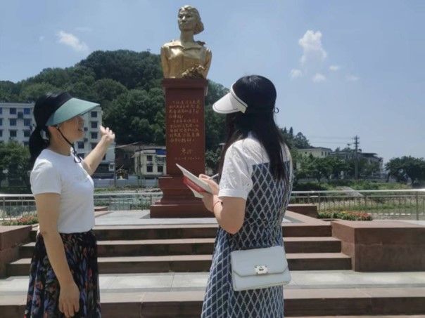 (图为实践队队员彭天爱参访乐山市丁佑君纪念馆)