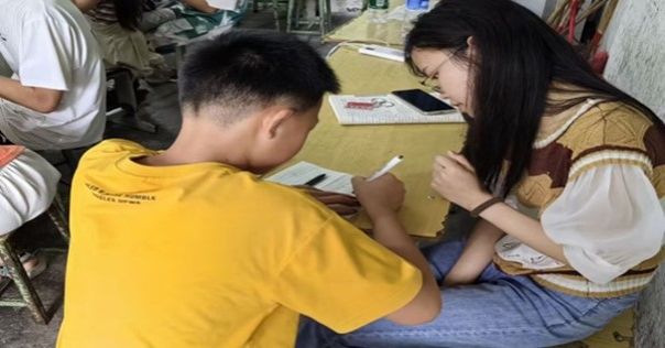 除了开展兴趣课程外,团队成员还开展了作业辅导课,督促小朋友完成作业的同时还为小朋友们答疑解惑,帮助小朋友们巩固已经学过的知识,预习新知。