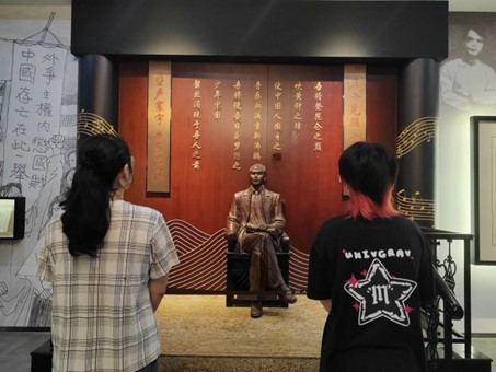 团队成员谌雨彤和郑钰杰前往了位于温江区人民公园的王光祈纪念馆。在参观王光祈生平事迹展厅和纪念王光祈书画作品展的过程中,成员们深刻感悟到了王光祈身上崇高的革命精神和深厚的爱国情怀,同时团队成员对先辈的伟大事迹表达了崇高的敬意。