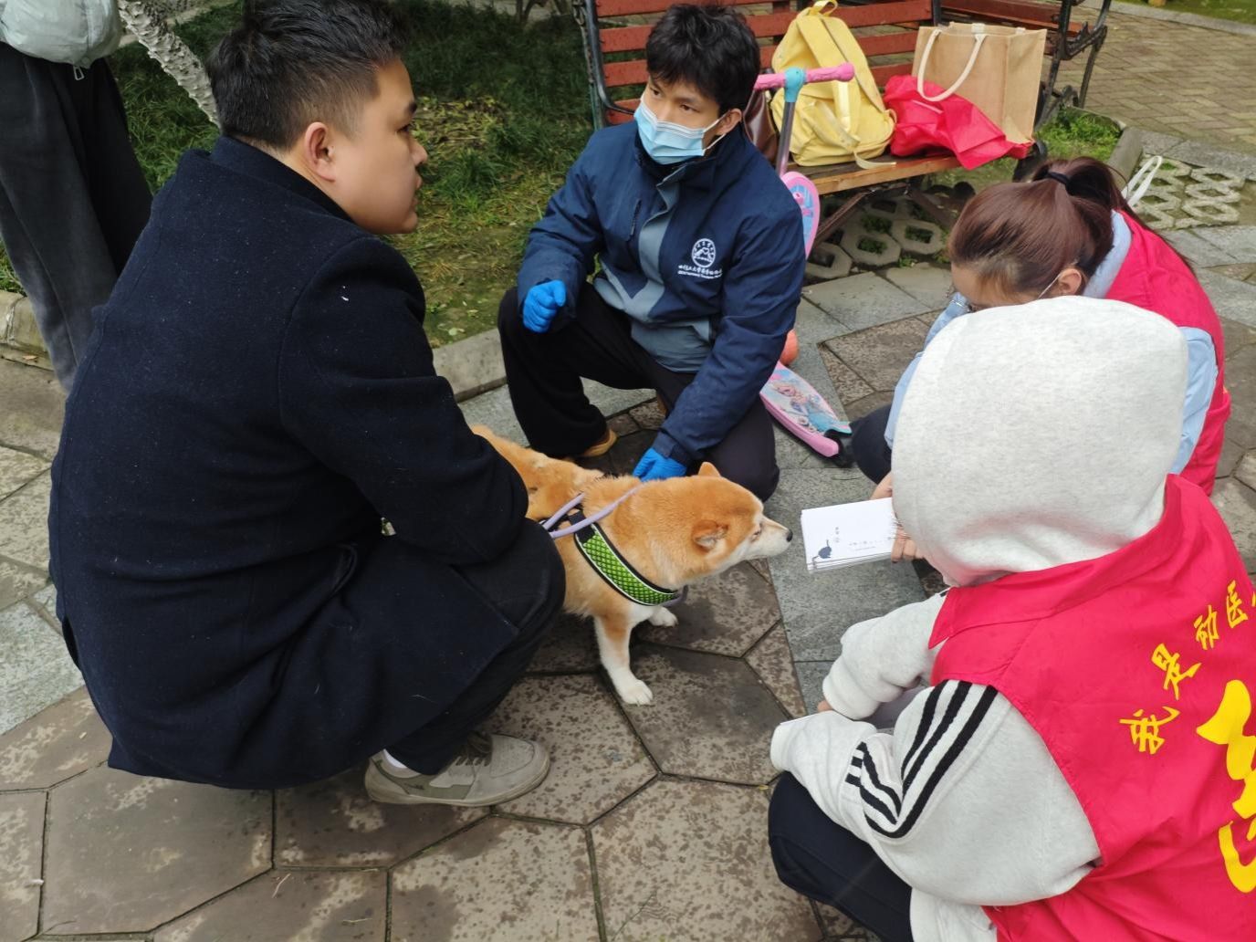 与此同时,“医心一‘义’,宠物科普义诊团”的成员与志愿者们向社区居民分发了《养宠知识手册》,并于长安盛景小区进行问卷调研工作。志愿者在与居民交谈过程中,向他们科普了常见的人畜共患病、疫苗接种、绝育护理等养宠知识,提出了一些科学养宠的建议,增强了社区居民科学养宠意识,为构建美丽社区添砖加瓦。