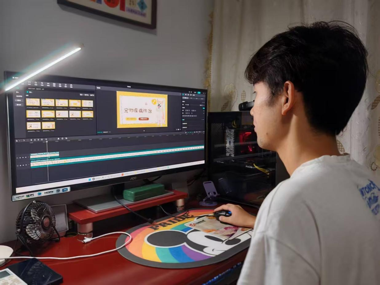 在素材搜集环节,团队充分体现了线上实践的灵活性。王琪和舒杨利用中国知网、行业数据库等线上资源查阅专业文献,确保视频内容的科学性;同时,通过短视频平台、动物医院官网等渠道搜集真实案例与影像素材,增强视频作品的说服力。基于收集的资料,钟徐万和李雪整理并制作了视频所需的PPT。