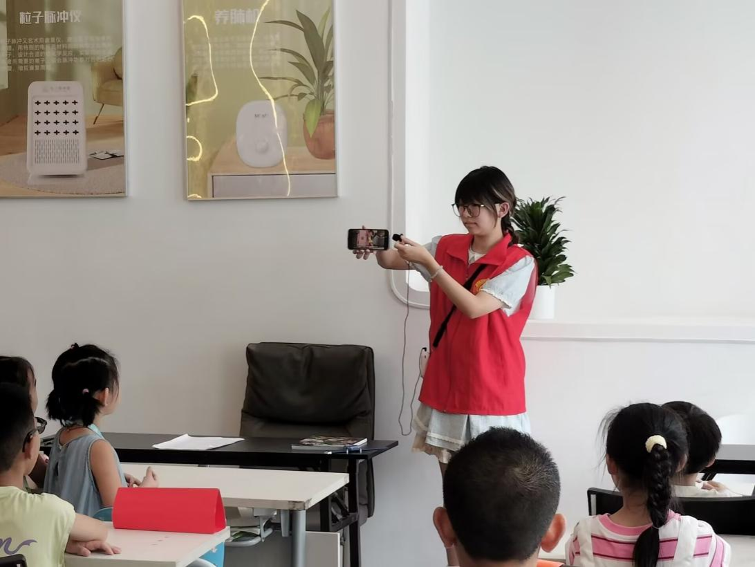 7月25日上午,实践队走进成都市天府新区兴隆街道田园诗驿社区,开展了以“航天技术如何点亮‘天府粮仓’”为主题的科普宣讲活动。活动过程中,实践队员刘露涵通过PPT演示、互动问答等形式,向小朋友们系统讲解了航天育种、卫星遥感监测、太空农业等技术在农业生产中的应用。