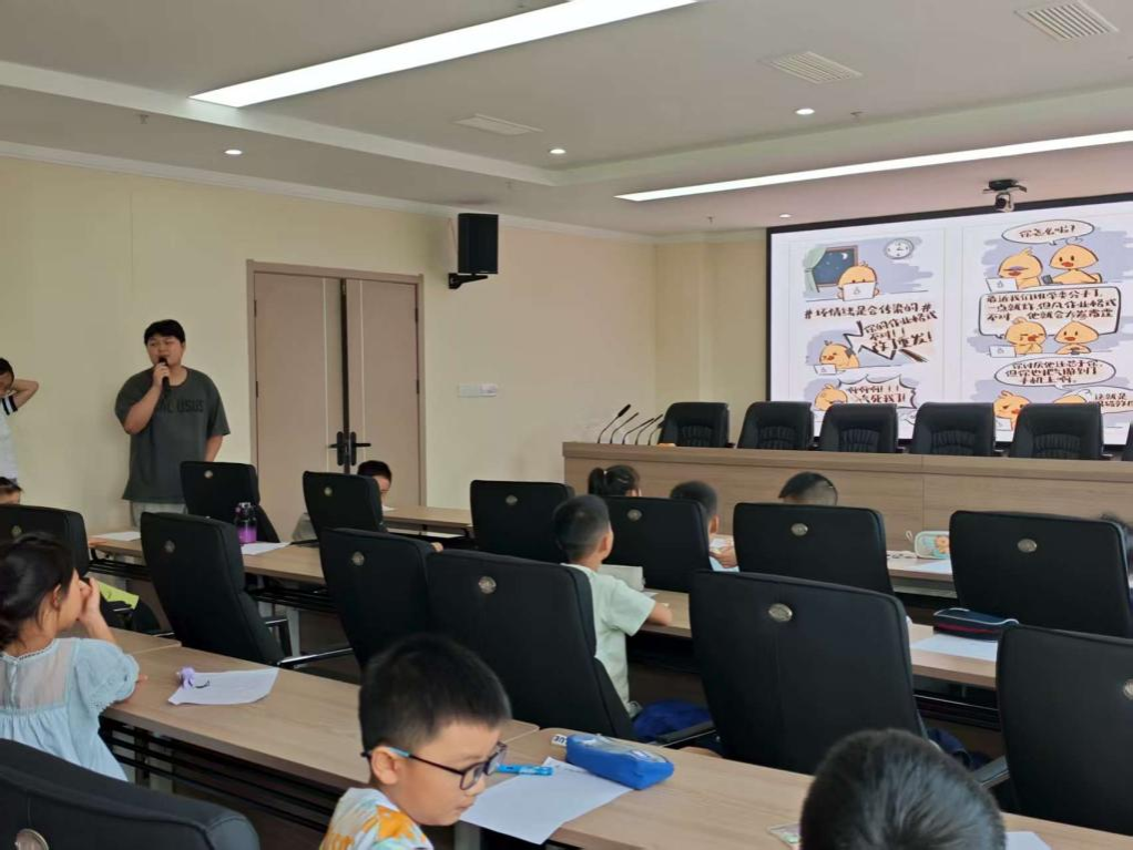 7月21日,夏令营首日,“彩虹小分队”以安全教育与心理辅导活动拉开帷幕。在近两个小时的安全教育课程里,队员们结合儿童生活场景,运用动画演示、案例分析等形式,深入浅出地讲解了交通安全、防溺水安全等知识。随后一小时心理辅导活动,通过趣味游戏引导孩子表达情绪,助力他们构建健康心理认知。