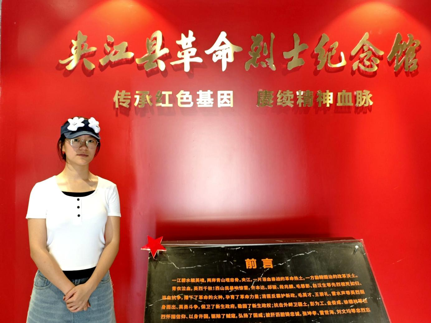 第二组成员余沁烨和余婉馨前往夹江县烈士陵园开展实践活动。在烈士陵园内,两人首先向革命烈士纪念碑行三鞠躬礼,以表达对革命先烈的深切缅怀和崇高敬意。随后,在讲解员的引导下,两人参观了烈士事迹陈列馆,逐一了解在不同历史时期牺牲的夹江籍革命烈士的英勇事迹。从土地革命时期的农民运动领袖,到抗日战争时期的抗日英雄,再到解放战争时期的战斗英雄,每一位烈士的事迹都让实践队员对革命历史有了更直观的感受。在烈士墓区,两人仔细查看每一块墓碑上的烈士姓名和牺牲年份,并记录下部分烈士的简要事迹,为后续的学习总结积累了丰富素材。