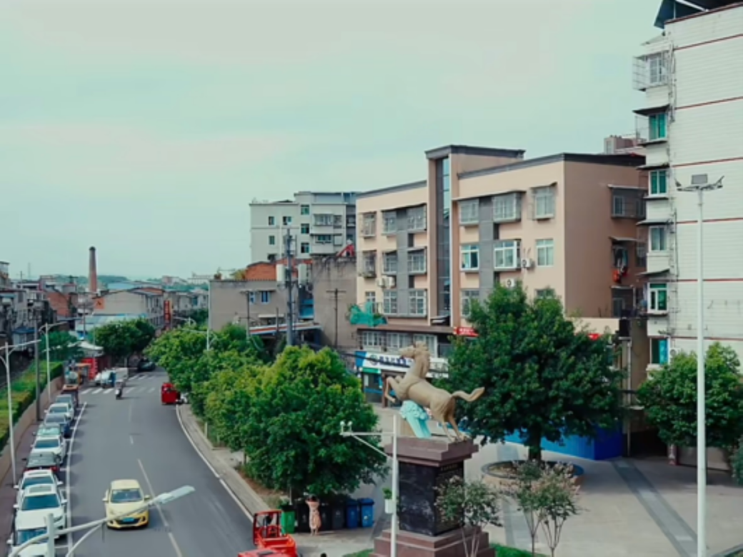旧照里,河岸绿化较少,环境较为杂乱;新照片中,岸线整治和绿化提升已完成,生态状况明显改善。如某乡镇广场,十年前建筑老旧、绿化单一(如图 3 );如今街道整洁、绿树成荫,生态与人居共融(如图 4 ),见证 了“绿色发展” 理念落地。