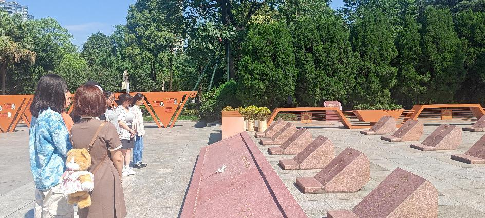 清晨,分队成员们怀着崇敬之心踏入十二桥烈士墓。阳光透过枝叶,洒在庄严的墓碑上,仿佛为这段历史镀上一层厚重的金辉。在墓碑前,成员们整齐伫立,聆听历史回响。讲解员以饱含深情的语调,讲述着那段峥嵘岁月里,烈士们为争取成都解放,不惧艰险、舍生取义的壮烈故事——他们以热血浇灌川西沃土,用生命染红成都解放的朝霞,让今日的安宁有了坚实根基 。