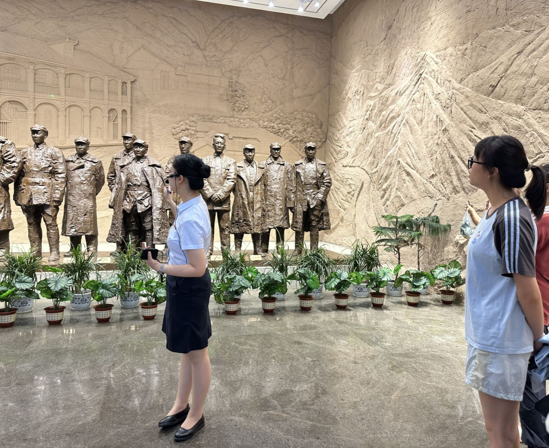 团队成员白程凤参观了遵义红色博物馆。踏进贵州遵义老城子尹路96号那栋青瓦灰砖的二层小楼,空气骤然肃穆。87年前,在这不足30平方米的客厅里,一场关乎红军生死、中国革命走向的会议,如暗夜惊雷劈开迷雾,点燃了指引万里长征的星火。参观过程中,成员感叹说:“站在先辈们战斗过的地方,触摸着历史的痕迹,我深刻理解了什么是信仰的力量。”
