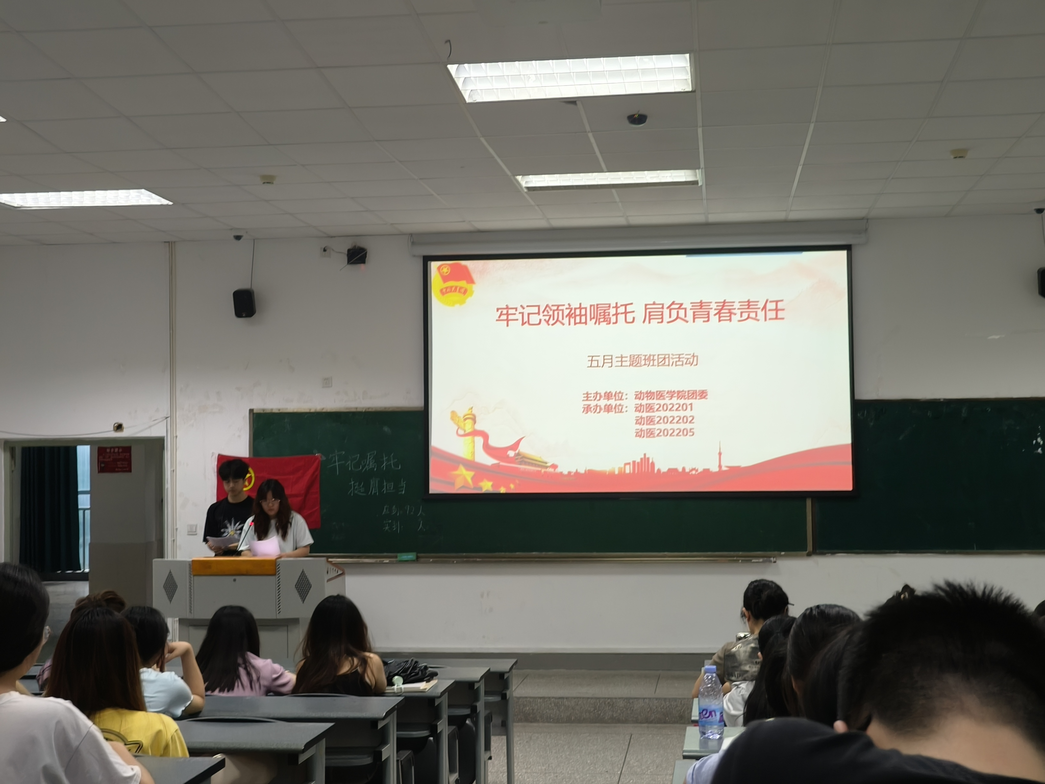 为引领广大青年在理论学习和实践中牢记领袖嘱托、不断坚定理想信念、肩负好青春责任。5月28日,动医202201、动医202202和动医202205团支部于4-A207举办了以“牢记领袖嘱托,肩负青春责任”为主题的示范性班团活动。