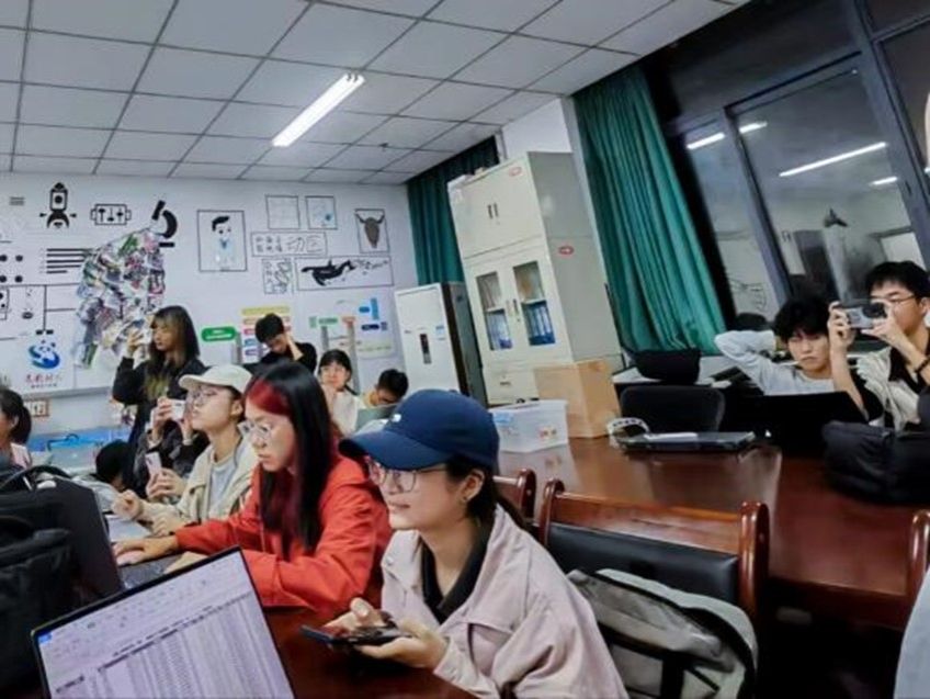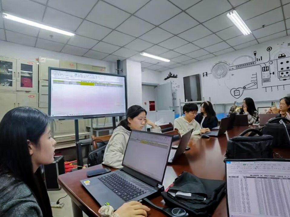 (图为成员们一起学习excel的画面)