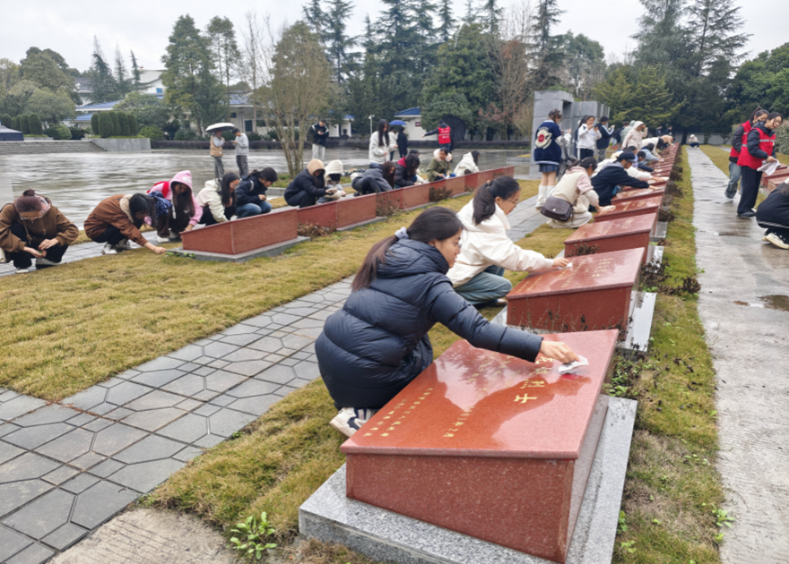 (图为动检202401、202402班的志愿者在温江区烈士陵园的清扫活动)