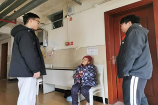 (图为动医202204班的志愿者在学校附近社区慰问老人)