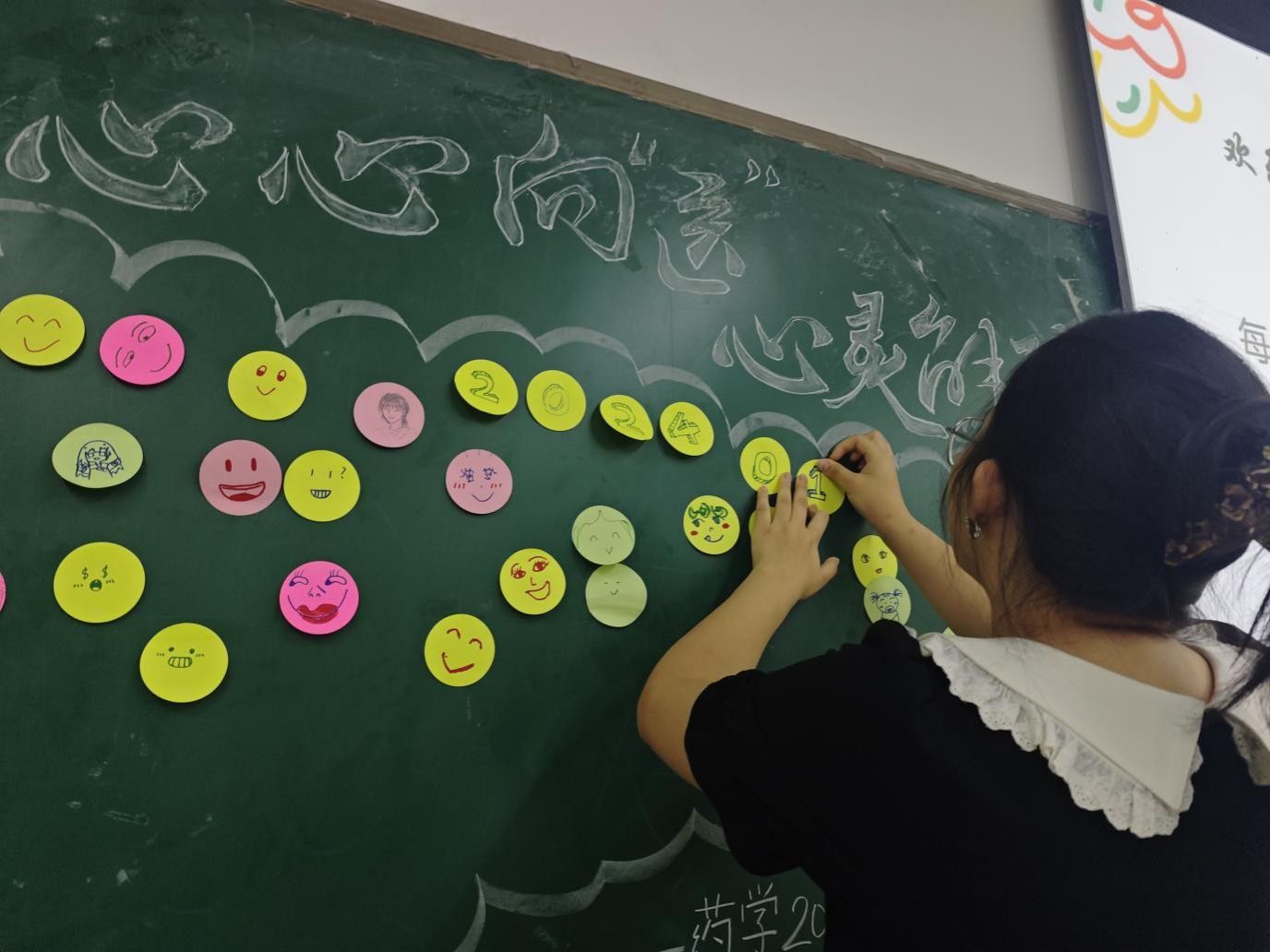 (图为班级成员粘贴笑脸墙)