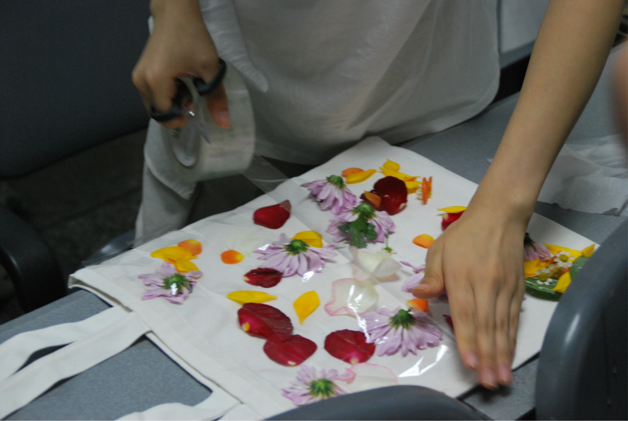 “向春天借点颜色”环节,让成员们走出教室,拥抱自然。该环节通过沉浸式体验花瓣、树叶拓印,让成员们感受自然疗愈力。活动最后,成员们在帆布袋上写下专属于自己的话语,完成画作,这寓意着学子们将自然能量转化为成长动力。在与自然的交流中,成员们感受到了春天的蓬勃生机,舒缓了学习压力,汲取了心灵养分。