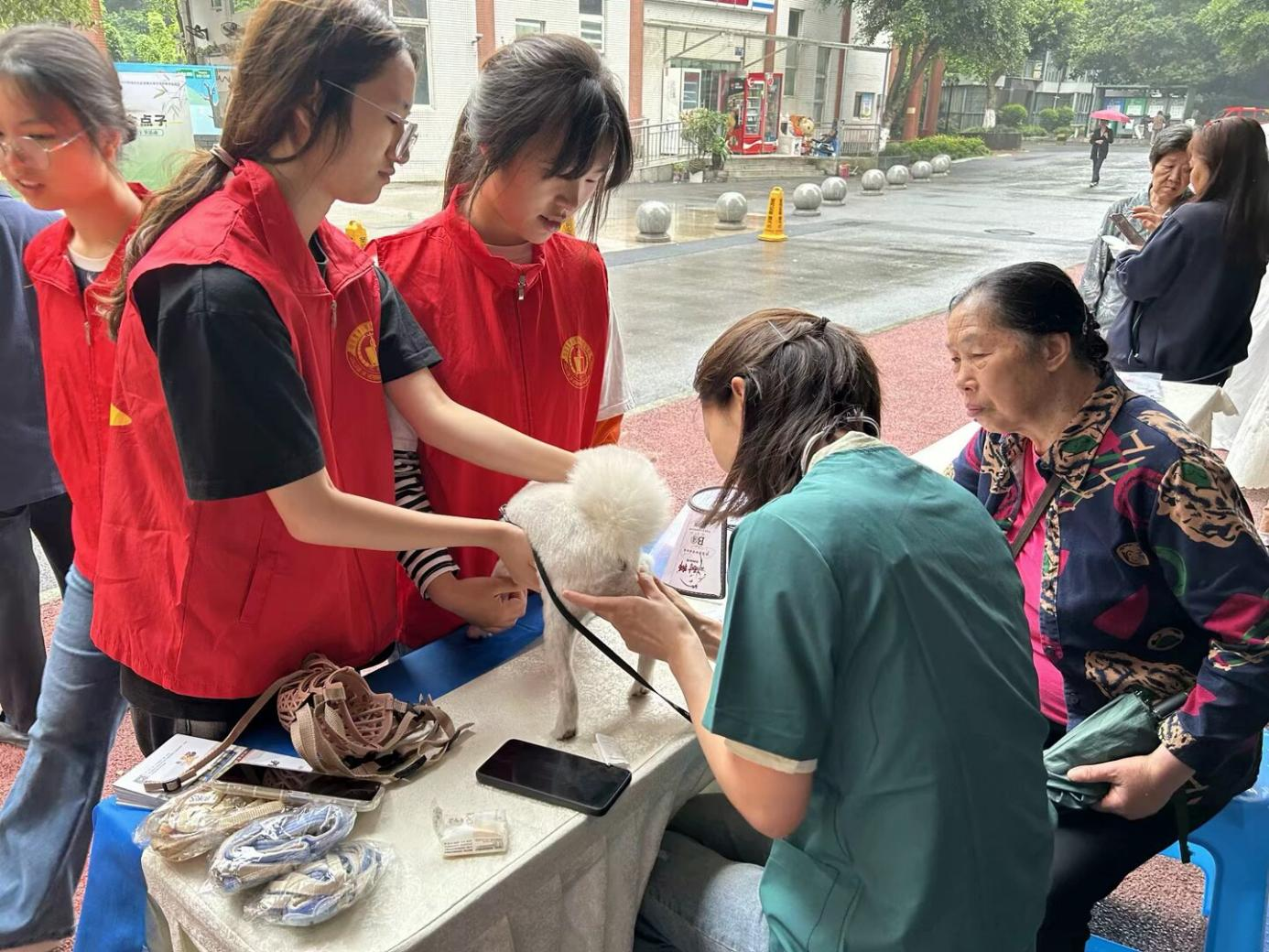 5月30日,“宠物义诊活动”在四川省温江区南熏大道漫城顺利开展,来自best365网页版登录官方网站的五名志愿者与钟亚琳老师为社区宠物及宠物主人提供健康服务。此次活动聚焦于宠物健康检查与科学养宠知识普及,吸引了众多居民参与。