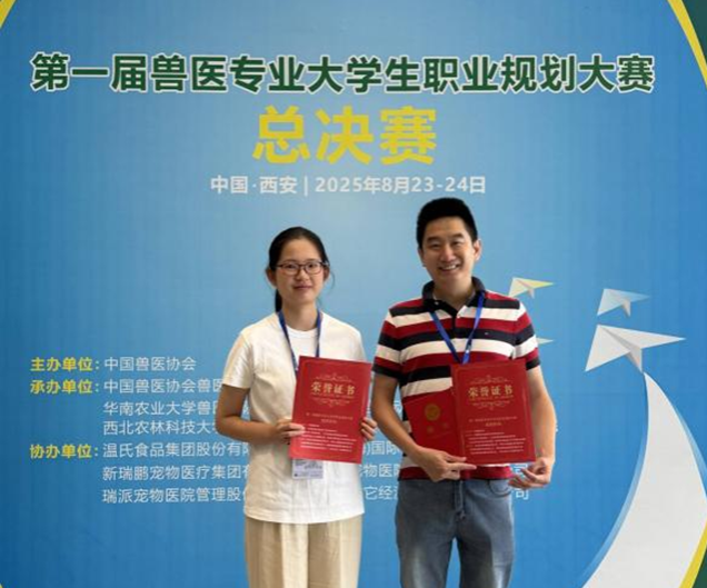 8月22日至24日,中国兽医协会第一届兽医专业大学生职业规划大赛全国总决赛在西安举行。动物医学专业2021级本科生朱轶凌同学凭借清晰的职业规划、扎实的专业基础和出色现场表现荣获大赛一等奖(全国仅12人),张丹、曹豫宁、陈玛丽、魏晓琳等四位同学获评优秀奖。