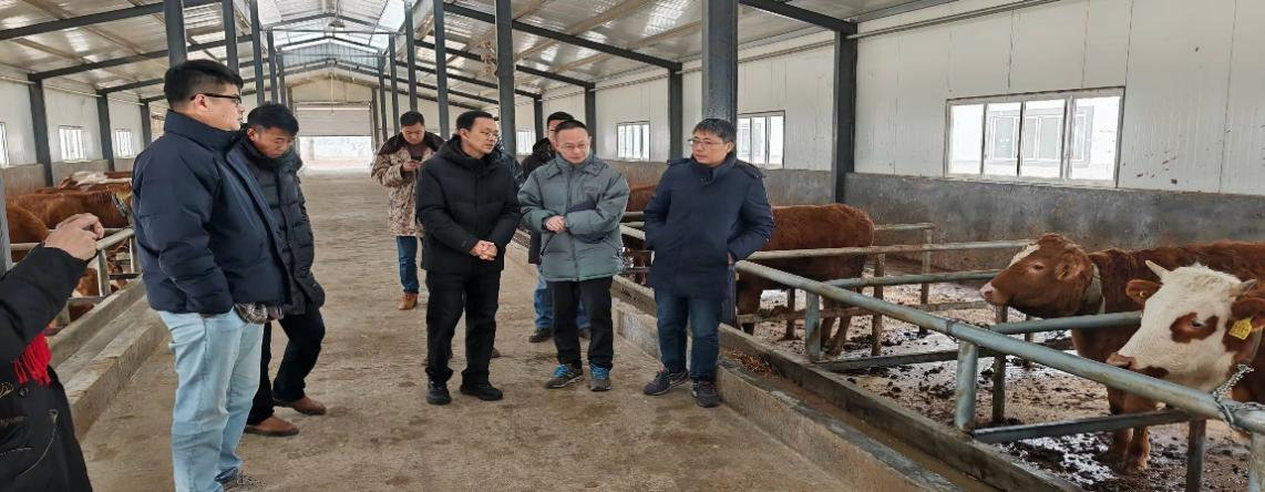 随后,科技特派团专家组一行与省农业农村厅特色产业发展处李涛处长一行冒着冰天雪地随县农业农村局局长马比小龙、党组成员皮特以格等前往昭觉县涪昭产业园区,查看肉牛饲养管理与防寒抗冻应对措施。在肉牛养殖场,张涛和马晓平两位专家针对近期风雪天气对肉牛饲养的不利因素与牛场管理者进行交流,强调牛舍保暖与通风的重要性并提出要注意牛只日粮的保证。专家们对牛场采用空气能热水器解决冬季饮水水温过低的措施表示认可,并建议在彝区进行推广。