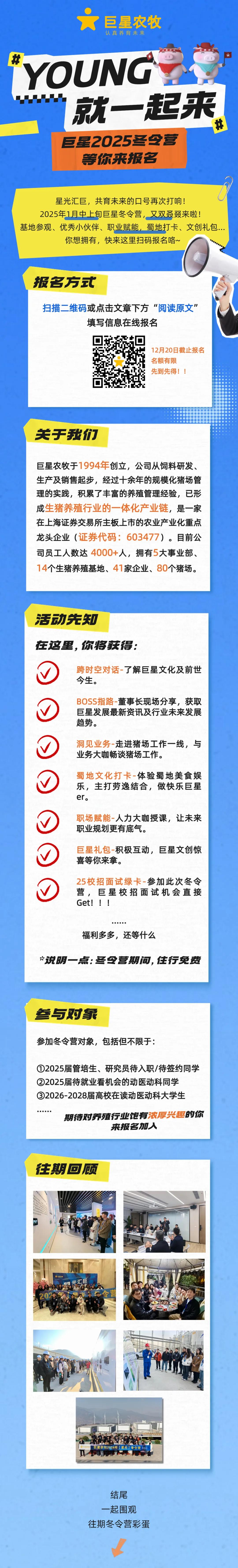 【动医梦工场】2025年寒假 巨星农牧冬令营邀请函