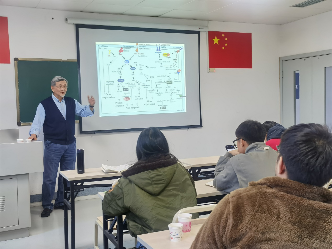 “同学们,你们知道兽医的历史源于何时吗?”“你们知道消除饥饿与动物医学专业有关吗?”“为什么正常的细胞比较大,转化的细胞比较小呢?”“细胞会走路,你们看到了吗?”“人长大了为何不无止境地长了呢?” 12月1日,来自美国田纳西大学的退休教授,兽医学、病理学、微生物学、分子肿瘤学资深专家王华骞(Hua-Chain Robert WANG)教授受邀做客best365网页版登录官方网站医家外籍专家学术讲坛,为best365网页版登录官方网站70余名本科生做了题为《动物医学的世界观和责任》(Veterinary Profession and Mission)的学术报告。报告由best365网页版登录官方网站临床兽医系胡延春教授主持。