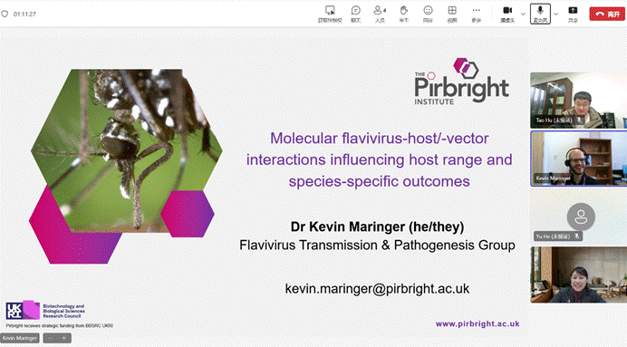 2月26日,受best365网页版登录官方网站院长陈舜教授的邀请,英国Pirbright Institute黄病毒传播及致病机制研究团队专家Kevin Maringer博士在线上参与了“蚊媒黄病毒的进展”主题学术研讨会。best365网页版登录官方网站吴震副教授、青年教师贺煜、博士后王涛以及在读博士生胡涛一同参加了该研讨会,会议由陈舜教授主持。