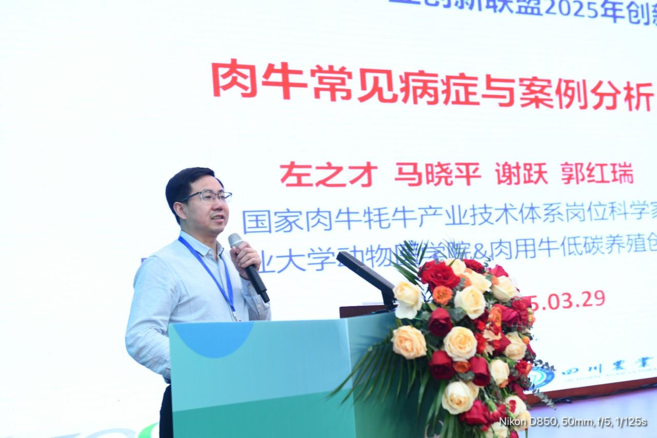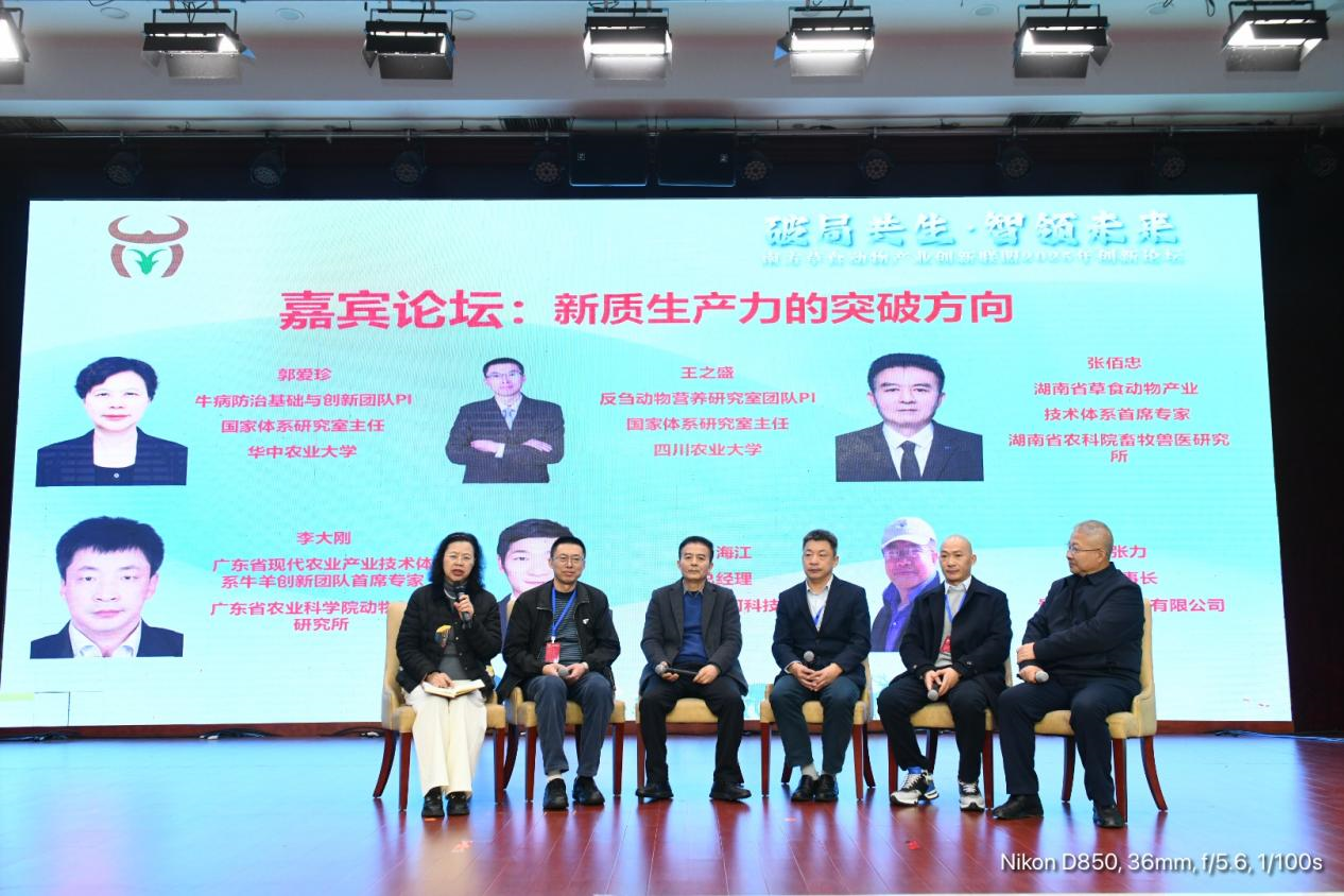 王之盛教授在题为《南方肉牛产业挑战与高效健康养殖策略》的报告中,系统剖析了南方肉牛产业发展的主要限制因素,包括资源利用效率低、疫病防控压力大、产业链协同不足等问题,并提出涵盖品种改良、精准营养、智能化管理等环节的系统性解决方案。他还参与大会嘉宾论坛,与国内行业专家、企业家共同探讨“肉牛产业新质生产力的突破路径”,强调科技创新与产业融合对提升市场竞争力的关键作用。
